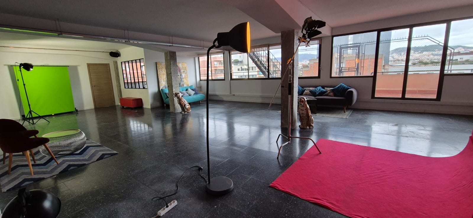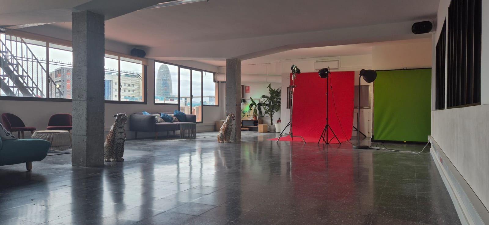 Designed as a multifunctional creative hub, it offers a large open-plan hall, a 100 m² wraparound terrace with skyline views, professional production rooms and private meeting spaces.